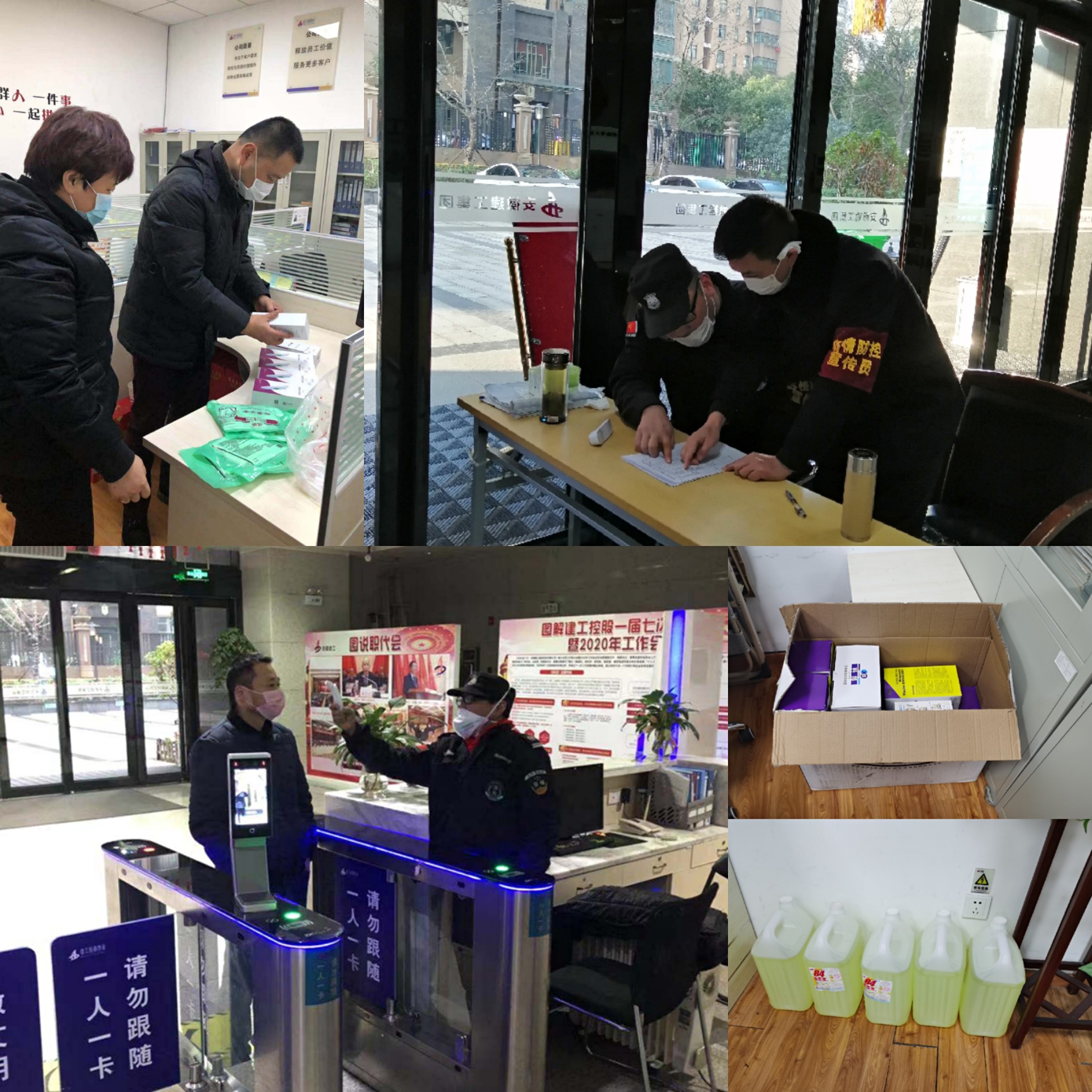 嚴峻的疫情形勢下,各項防疫物資嚴重急缺,為保障一線員工防護措施到位,公司主要領導在春節(jié)假期期間,親自到合肥市場多家藥店購買物資,并到安建大廈項目指導測溫儀等使用操作。安建物業(yè)上下動員,全員行動,多渠道采購84消毒液、75%醫(yī)用酒精、口罩、一次性手套、測溫儀等防疫物資,形成了全面動員、全面加強疫情防控、共克時艱的工作局面。