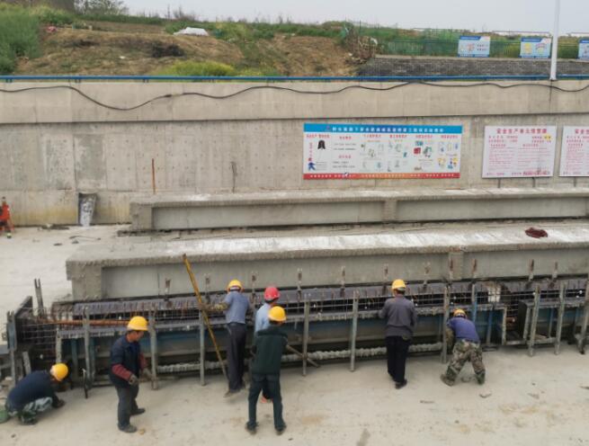 4月10日,在橋頭集路項(xiàng)目施工現(xiàn)場(chǎng),多名工人正在鋼筋加工場(chǎng)、梁板預(yù)制場(chǎng)井然有序的忙碌著,現(xiàn)場(chǎng)熱火朝天。