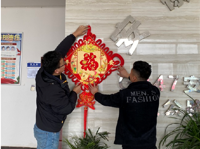 為了將“年味”注入進(jìn)每一個(gè)不能回家的員工心中,讓新年更有煙火氣、儀式感,項(xiàng)目部掛中國結(jié)、貼春聯(lián)、送福字,為做好疫情防控工作就地過年的一線建設(shè)者增添“年味”。員工們聚在一起喜迎新年,互相祝福,年味濃濃,感受著新春的溫暖,營造了春節(jié)喜慶祥和的節(jié)日氛圍。