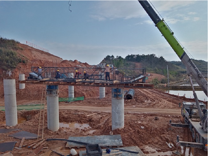現(xiàn)在,他們正緊張有序地投入到楊灣河特大橋主橋14#下塔柱澆筑和牛腿施工、主橋15#塔座澆筑以及華陽河大橋主橋樁基、輔助棧橋的的施工中。