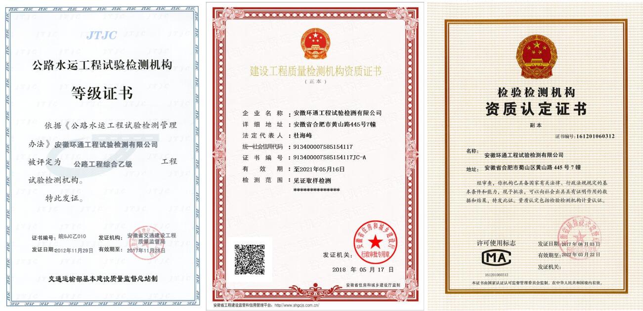 多年來,環(huán)通公司秉持“誠信為本、敬業(yè)至上”的安徽建工核心價值觀,本著“公平、公正、科學(xué)、高效”的經(jīng)營原則,堅持“素質(zhì)求高、檢驗求準(zhǔn)、作風(fēng)求嚴(yán)、服務(wù)求優(yōu)”的精神,一如既往地為交通建設(shè)事業(yè)服務(wù),用匠心鋪就了一條品質(zhì)發(fā)展之路。
